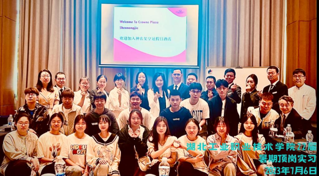 随后,校企双方就人才培养、实习就业、校企深度合作等方面进行交流座谈。根据神农架酒店业呈明显季节波动特点,结合企业需求,酒店管理与数字化运营专业17名员工,将在企业兼职教师指导下,进行为期一个月的实践岗位工作训练,既增强同学们的专业技能水平和实践能力,又缓解了酒店在旅游旺季人员不足的难题。