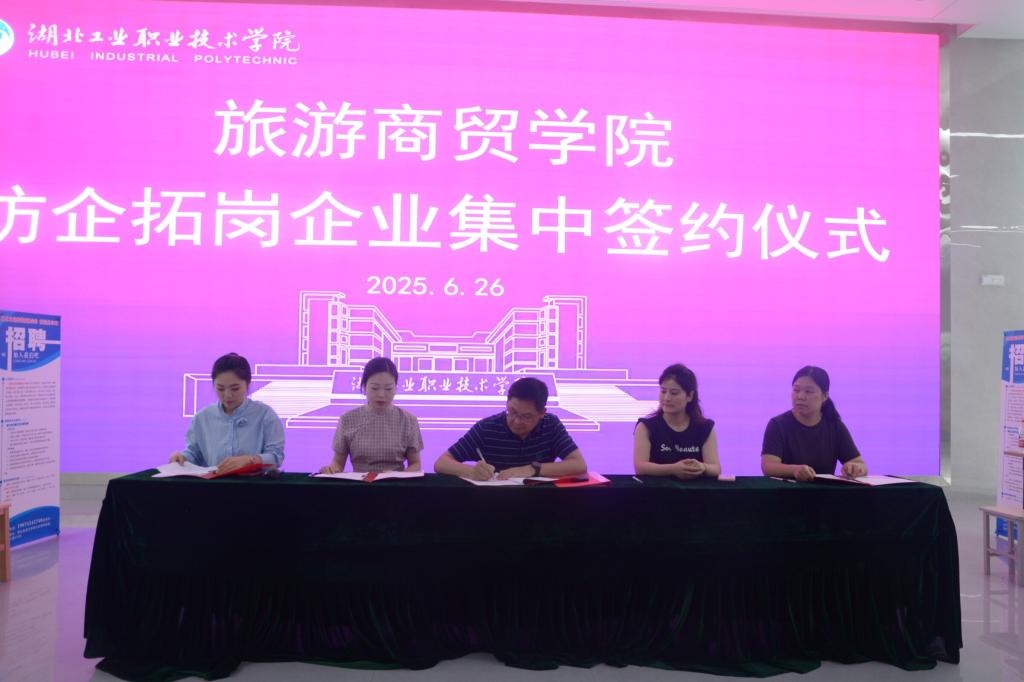 在访企拓岗集中签约环节,顺丰集团、丹江口水源地供应链集团、竹溪大楚城运、湖北我游电商等8家本土和武汉重点企业与公司现场签订合作协议,进一步拓宽实习就业资源池。
