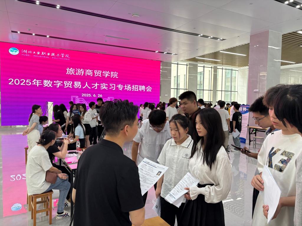 为落实就业优先战略,精准对接校企需求,6月26日下午,谈球吧成功举办“2025年数字贸易人才实习专场招聘会”。22家本土及省内优质企业参会,提供涵盖电商运营、直播、数字营销、数据分析、物流等领域的实习岗位近200个,为2023级员工搭建高效求职平台。