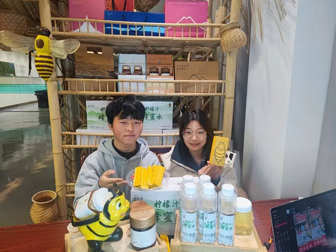 梁聪聪介绍,在产品筛选环节,员工团队发挥专业优势,深入十堰市竹山、竹溪、丹江口等县区开展实地调研,从数百种产品中精选出绿松石、香菇木耳、黄酒等20余种地方特色产品。校内同步建成农特产品展览馆与直播间,为推广销售夯实基础。在竹山县擂鼓镇广山村的崔家蜜生产车间,师生团队全程参与生产流程调研,根据收集的一线数据为合作社量身定制直播方案,推动崔家蜜线上销量持续增长,切实助力农户增收。